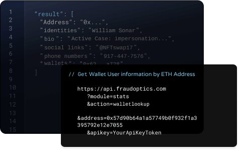 Data API—a powerful tool designed to elevate your existing platform or application. Gain access to an extensive collection of on and off-chain wallet datapoints, providing insights from the blockchain to equip yourself against fraudulent users and interactions. Elevate your project with seamless integration, comprehensive data, and continuous growth through our Data API.
